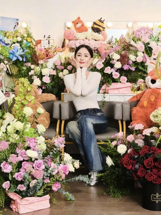 杨幂在生日当天以白色紧身长袖搭配定制拼接阔腿牛仔裤,脚踩STACCATO银色运动鞋,遵从“上身基础下身就不基础”的搭配公式,为整体造型增加亮点。