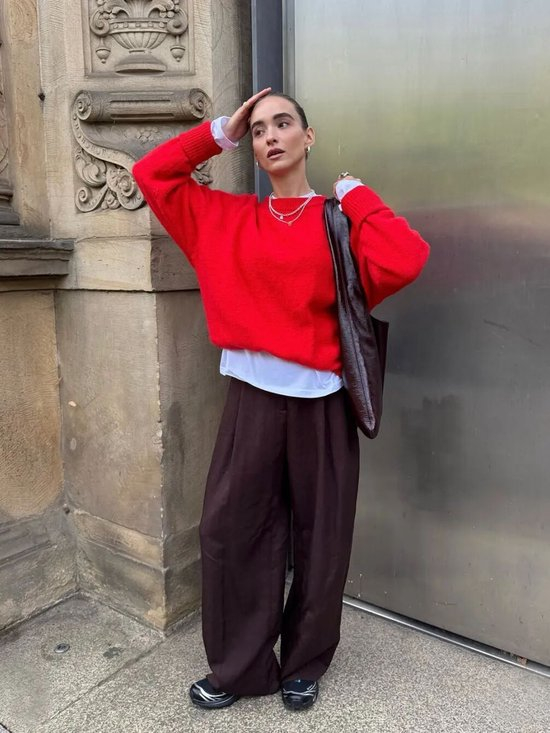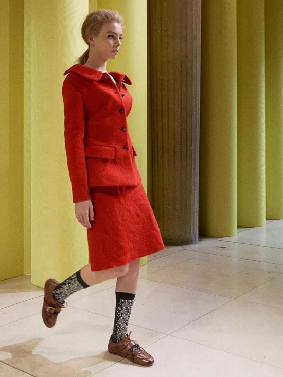 网红芭蕾鞋可搭配直筒裤、长裙或宽松上衣,外搭一件廓形外套,完美复刻巴黎街头风格。