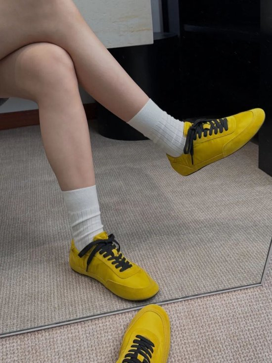Maison Margiela的Sprinters新系列则将解构主义发挥到极致,小牛皮、麂皮与复古尼龙的拼接,加上手工做旧处理,每一双都仿佛承载着时光的故事,新增的深绿、浅蓝、牛血红等配色更是为秋日增添了一抹亮色。