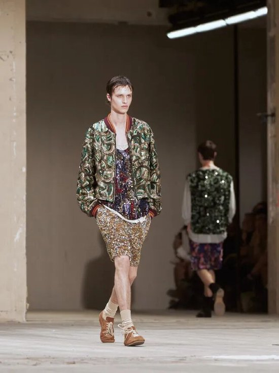 Dries Van Noten的超薄底德训鞋采用橡胶网眼和麂皮皮革拼接,保留经典圆头鞋头和对比色鞋带设计,新增的蛇纹皮革款式更打破了传统德训鞋的单调感。